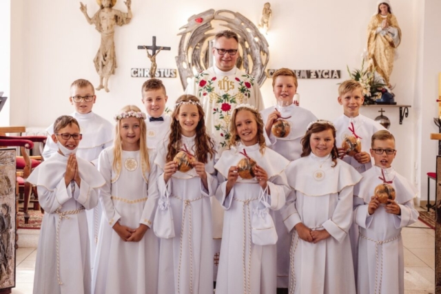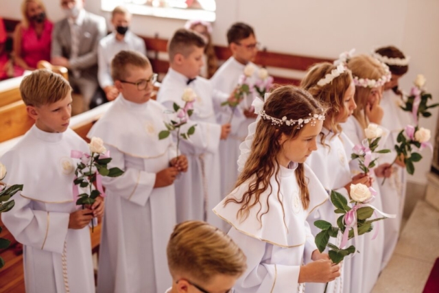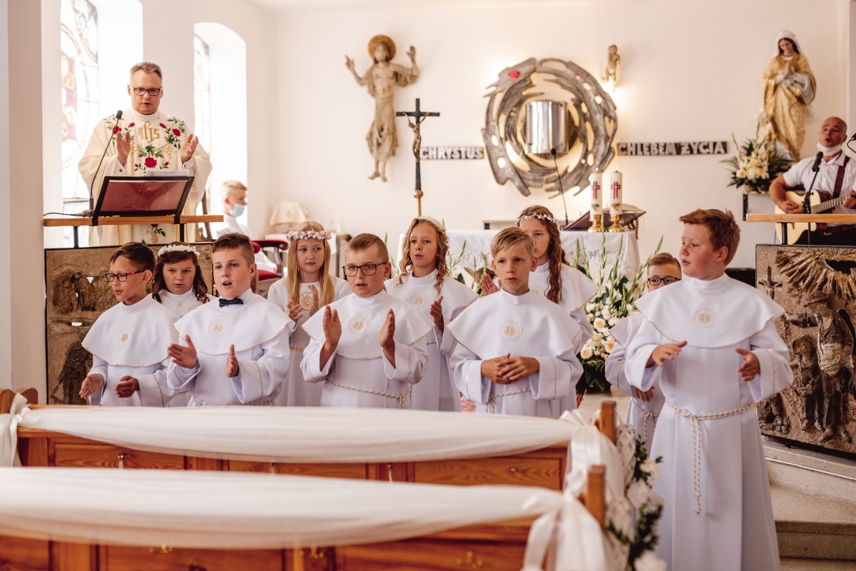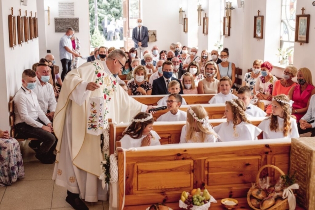 14 sierpnia 2020 odbyła się w naszej parafii Pierwsza Komunia. Choć to czas świąteczny to pod pełnym rygorem sanepidu daliśmy radę z przeciwnikiem Covid-19 🙂