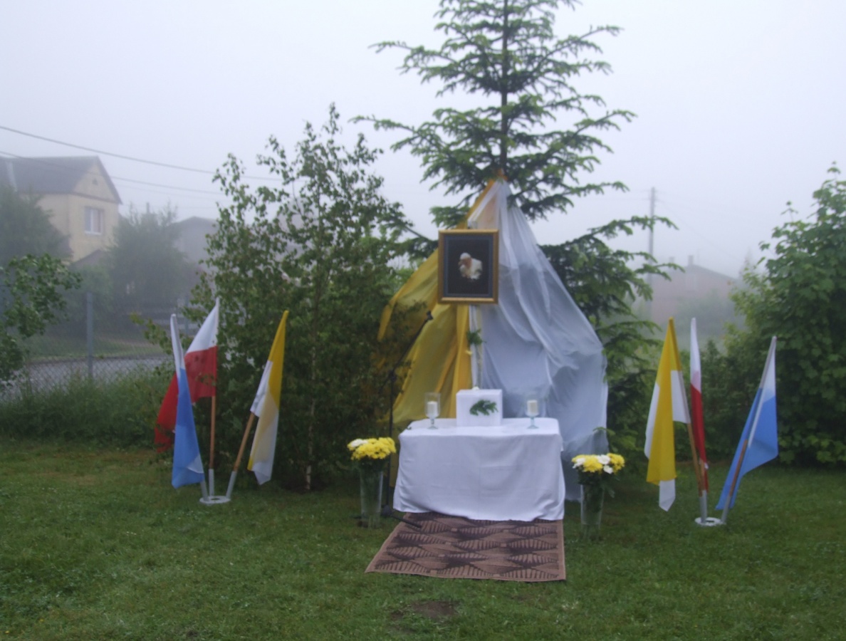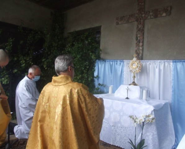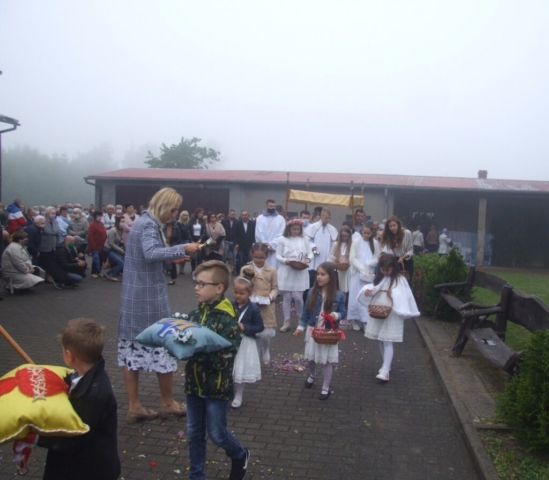 W roku objętym pandemią Covid 19 Uroczystość Ciała i Krwi Pańskiej odbyła się na terenie parafii. Udaliśmy się w procesji do czterech ołtarzy umieszczonych wokoło kościoła. Pogoda była nie ciekawa, rano deszcz a podczas procesji mocna mgła (co widać na zdjęciach).