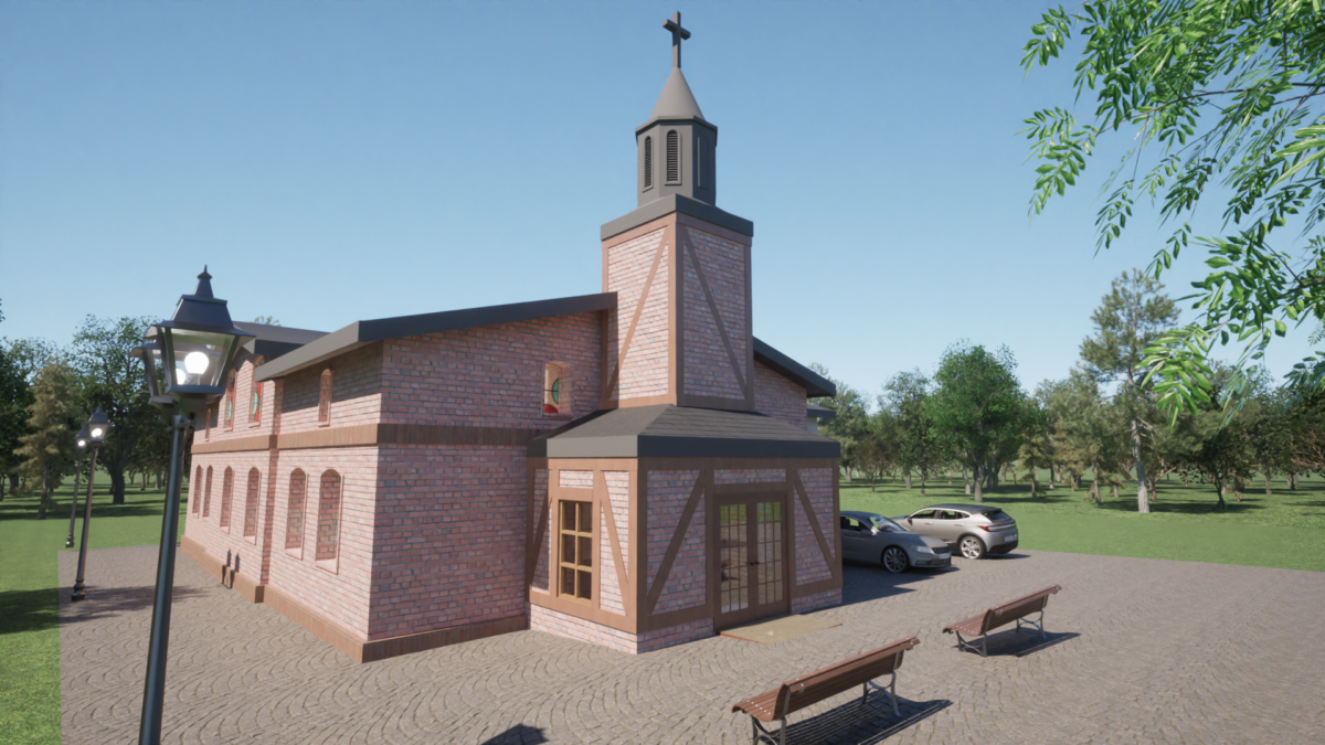 Koncepcja przebudowy kościoła MNMP w Jodłownie Koncepcja zawiera koncepcję widoków elewacji i wnętrza, koncepcję rzutów zagospodarowania parteru i poddasza całej budowli oraz na końcu wizualizację wideo: